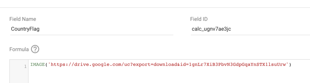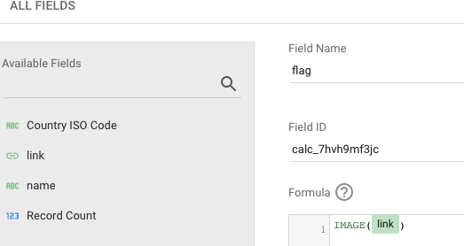 7. Create another field to convert the ‘link’ to the flag image to an Image